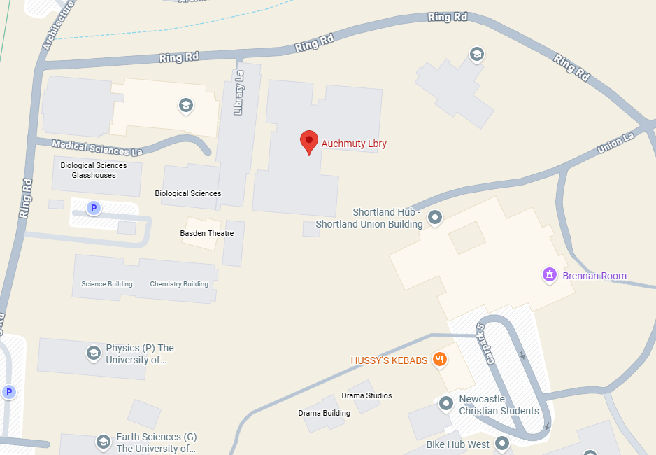 Note. Adapted from [Map of University of Newcastle, Callaghan Campus, NSW, Australia], by Google, n.d. (https://maps.app.goo.gl/UG8CsHkSCHWZv2wW7). Copyright 2020 by Google.